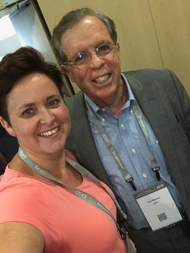 EASD wil ook zeggen: mensen ontmoeten en netwerken. Op mijn eerste diabetescongres (in Florida, Children with Diabetes), leerde ik Paul Madden kennen. Paul is psycholoog, heeft al 58 jaar T1 diabetes en weet als geen ander hoe belangrijk het is dat we ook mentaal gezond blijven. Dat er geïnvesteerd moet worden in onze psyche en niet enkel in materiaal om onze diabetes mee te regelen. We mogen niet vergeten dat het hebben van een chronische ziekte best zwaar is en een grote impact kan hebben op ons dagdagelijks leven en hoe we daar mee omgaan. Vraag jij wel eens naar psychologische begeleiding in het ziekenhuis waar je gevolgd wordt?